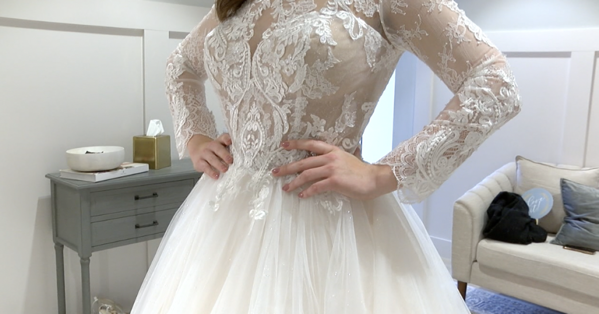 The One Bridal carries several designer dresses. They say lace and other materials have been tough for designers to source.